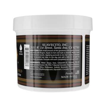 When comparing Suavecito Original Hold Pomade with its competitors, it stands out due to its superior blend of versatility and ease of use. Unlike other pomades that may feel heavy or sticky, Suavecito's water-based formula provides a lightweight hold that can be molded throughout the day. Many users appreciate its clean finish without the cumbersome cleanup, which gives it a significant edge in the crowded hair care market.