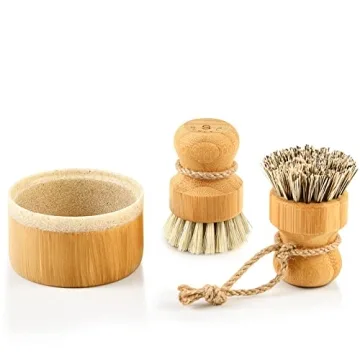 SUBEKYU Bubble Up Bamboo Dish Brush Set with Soap Holder, Wooden Dish Scrubber with Soap Dispenser, Natural Kitchen Scrub Brush, Washing Pot/Pans/Cast Iron, 2 Pack, Sisal + Coconut Palm Bristles