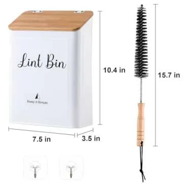 Show moreIntroducing the SUBEKYU Metal Magnetic Lint Bin, your ultimate solution for decluttering the laundry room. Designed with practicality and style in mind, this wall-mounted lint box holder features a sleek white metal finish coupled with a chic bamboo lid. Not only is it aesthetically pleasing, but its robust magnetic force allows it to securely attach to your dryer, ensuring your space remains organized and streamlined. This innovative storage solution helps you efficiently manage dryer lint, hair, and other laundry debris, keeping your laundry area tidy and functional.