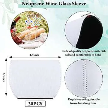 Sublimation Blank Wine Glass Sleeve Neoprene Wine Glass Sleeve Wine Glass Insulator Cover Drink Sleeve for Wine Glass Cold Drinks Sublimation Ornaments Supplies, 3.3 x 4.5 Inch (30 Pieces)