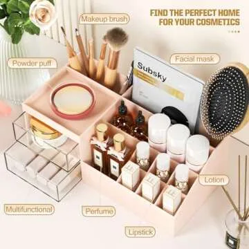 Subsky Makeup Organizer with Drawers, Easy Storage for Lipstick Brushes Eyeshadow Nail Polish, Multifunction Desk Organizer, Cosmetics Organizer for Countertop Dresser Vanity and Bathroom (Pink)