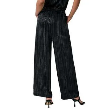 Sucegi Satin Wide Leg Pants for Women, Casual Palazzo Pants for Women, High Waisted Adjustable Loose Trousers