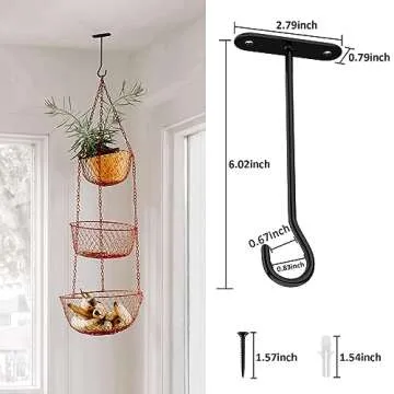 sucenance Ceiling Hooks for Hanging Plants,6" Hanging Plant Hooks,Wall Hooks for Plants,Wall Mount Hangers for Basket,Bird Feeders,Lights,Planters,Lanterns,Wind Chimes,Indoor&Outdoor Decoration Black