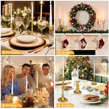 Suclain 24 Pcs Brass Gold Candlestick Holders and Taper Candles Set 12 Vintage Taper Holders with 12 Tall Candles Decorative Candlestick Modern Centerpiece for Wedding Birthday