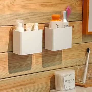 Show moreTransform your space with the Suclain 4 Pcs Wall Mounted Organizer, a perfect blend of functionality and modern design. These non-drilling adhesive floating shelves are meticulously crafted to keep your essentials organized and within reach, whether in your bedroom, bathroom, kitchen, or office. Measuring approximately 11 x 6.5 x 9.5 cm (4.33 x 2.56 x 3.74 inches), each storage container is spacious enough to accommodate various items, including makeup brushes, toothbrushes, toothpaste, and more, all while maintaining a sleek appearance that does not overwhelm your decor.