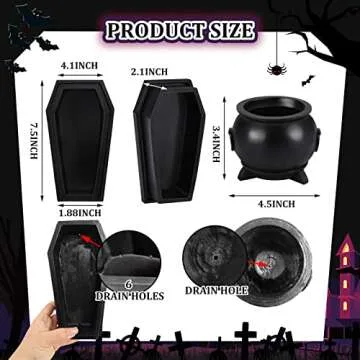 Suclain Halloween Planter Coffin Planter Witch Planter Cauldron Witchcraft Planter Gothic Home Decor with Drain Holes for Indoor and Outdoor Use, Comes with Skull Accessory