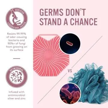 Show more Introducing the Sud Scrub, a revolutionary silicone shower brush designed to elevate your showering experience. Unlike conventional scrubbers, Sud Scrub is infused with silver and zinc, ensuring that it effectively resists 99.99% of odor-causing bacteria and over 90% of fungi. This means less worry about hygiene and more focus on enjoying the moments of relaxation in your shower.