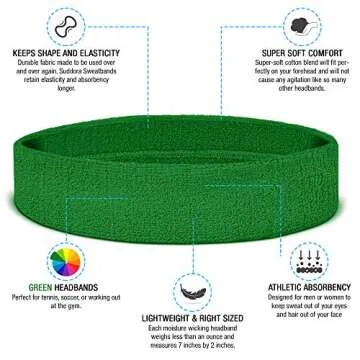 Suddora Workout Headband for Men and Women, Moisture-Wicking Athletic Sweatband, Lightweight Cotton Terry Cloth Bands for Basketball, Tennis, Football, Gym, Running, Cosplay & Costumes (Green)