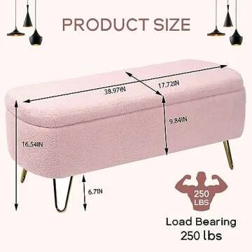 Sudwesto Modern Storage Ottoman Bench, Vintage Boucle Upholstered Entryway Bench, End of Bed Bench with Gold Legs, Padded Bench with Storage for Living Room, Bedroom, Entryway (Pink)