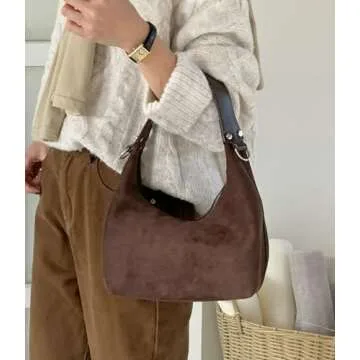 Suede Crescent Bag Women 2025 Retro Suede Slouchy Bag Fall Work Handbag Shoulder Bag Slouchy Tote Underarm Purse