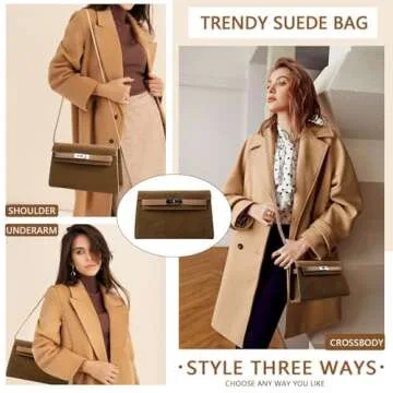 Show moreIntroducing the stunning Suede Shoulder Bag Crossbody Purse for Women, a fashion-forward accessory that pairs beautifully with both casual and elegant outfits. Crafted from premium suede, this bag boasts a soft texture that not only elevates your style but also offers impressive durability—making it an ideal companion for everyday use or special occasions. The chic brown color is versatile, allowing you to transition seamlessly from day to night. With a thoughtfully designed size of 9.8" x 2.3" x 6.2" and lightweight at only 0.74 lbs, it accommodates all your essentials including car keys, a small wallet, cosmetics, and sunglasses without feeling bulky.