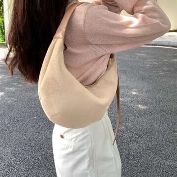 Suede Shoulder Bag for Women Slouchy Crescent Hobo Handbag Fashion Satchel Purse with Adjustable Strap 2024 Khaki