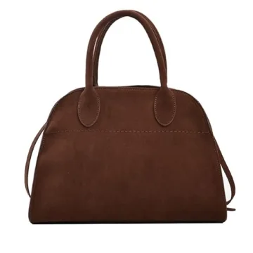 Suede Tote Bag for Women, Women's Suede Purse Vintage Top Handle Bag, Fashion Retro Shoulder Satchel Work Leather Bag (Brown Small)