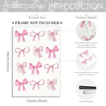 Sufeasdf Trendy Pink Bow Canvas Wall Art Watercolor Pink Bow Prints Painting Balletcore Girl Posters Funky Coquette Preppy Aesthetic Wall Decor12x18inch Unframed