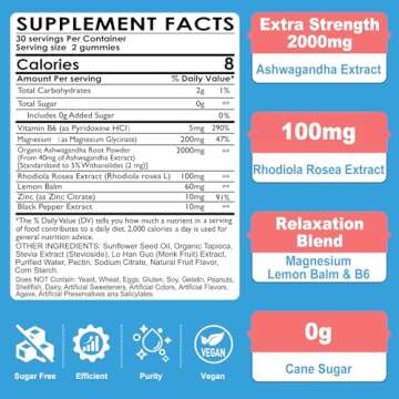 Sugar Free Ashwagandha Gummies - Magnesium, Rhodiola Rosea, Natural Sleep Support for Men & Women - 60 Counts