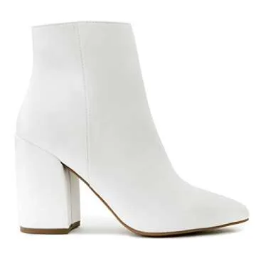 Sugar Women's Winter Chelsea Booties - Chunky High Heel, Pointed Toe, Fashion Ankle Boots-Evvie-White Size-9