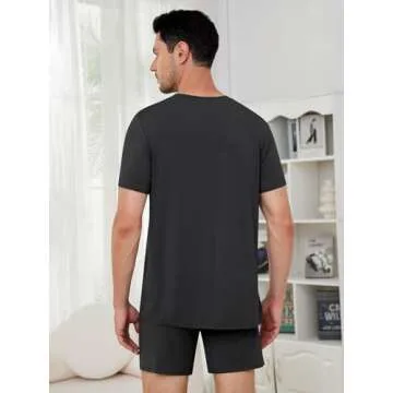 Sugsew Men's Lounge Wear Set with Underwear, Round-Neck Top and Short Sleep Pajama Set - Comfortable Loungewear for Men Black
