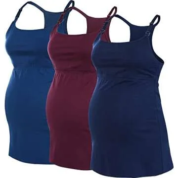 SUIEK Women's Nursing Tank Top Cami Maternity Bra Breastfeeding Shirts (Medium, Atrovirens+Burgundy+Navy)