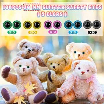 Show moreIntroducing the Suilung 100 Pieces Large Safety Eyes—the perfect addition to elevate your crafting projects! Designed thoughtfully for amigurumi, stuffed animals, and plush toys, these colorful plastic craft eyes bring your creations to life. Each package includes 100 safety eyes in vibrant colors such as brown, purple, green, and yellow, allowing you to mix and match to suit your designs. With an eye-catching shiny design, these eyes feature a smooth convex surface and glitter washers that add a touch of whimsy to any crafting project. Whether you're creating a cozy bear, a playful doll, or any soft toy, these safety eyes ensure a professional finish.
