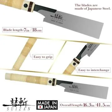 Show moreDiscover the art of woodworking with the exquisite Suizan Japanese Pull Saw, a marvel of craftsmanship that brings the rich tradition of Japanese tool-making right into your workshop. Unlike conventional push saws, this pull saw is designed for a pulling motion, offering a gentle yet effective way to achieve precise cuts. What sets this tool apart is its superior quality Japanese steel, which ensures razor-sharp edges for a smooth finish on every project. Manufactured in Japan, each saw is crafted by skilled artisans who infuse over a century of expertise into their work, resulting in a tool that is not only functional but also a piece of art.