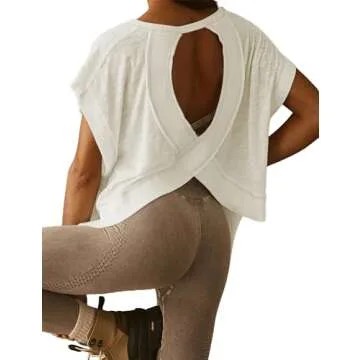 Show moreThe Sujama Women Oversized Open Back Short Sleeve Workout Crop Tops are the ultimate addition to your activewear collection. Crafted from a soft cotton blend, these shirts promise to keep you cool and comfortable during your most intense workouts. Whether you're powering through a session at the gym, hitting the yoga studio, or simply lounging at home, this versatile crop top will meet your every need. The breathable, lightweight fabric allows for superior airflow, ensuring you remain fresh throughout the day. With its unique construction, featuring a wide scoop neckline, back cutout design, and chic oversized fit, this athletic tee makes a bold fashion statement without compromising comfort or mobility.