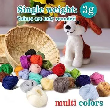 Show moreWelcome to the creative world of crafting with the Sukh Needle Felting Kit for Beginners. This comprehensive kit includes a vibrant selection of 40 colorful wool roving pieces, perfect for both new and experienced crafters. Each color is carefully packaged in convenient ziplock bags, ensuring easy access and preventing any mix-ups in hues. The high-quality wool roving boasts a smooth surface and fine texture, allowing you to easily mold and felt your projects into stunning shapes. Whether you are looking to create adorable animals, decorative pieces, or thoughtful gifts, this kit provides everything you need to dive into your crafting journey!