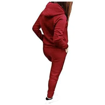 Sukiyaki Women Jogger Outfit Matching Sweat Suits Long Sleeve Hooded Sweatshirt and Sweatpants 2 Piece Sports Sets (XXL, Red)