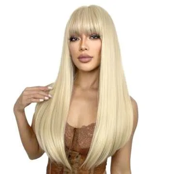Show moreSUKRI Long Blonde Wig with Bangs is a fashion-forward wig that transforms your look instantly! With a stylish 22-inch length, this straight blonde wig offers a natural and beautiful appearance that is sure to turn heads. Designed for comfort and ease, it is crafted from high-quality, heat-resistant synthetic fibers that not only provide a soft touch but also mimic the look and feel of real hair. Lightweight and breathable, this wig ensures you can wear it all day without discomfort. Whether you're getting ready for a special event or looking to elevate your daily style, this wig is the perfect choice!