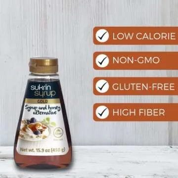 Show moreDiscover the delightful taste and health benefits of Sukrin Gold Syrup, your new favorite sugar alternative that satisfies your sweet tooth without the guilt! Made from natural soluble fiber, this low-calorie, low-carb syrup is crafted to provide a rich, thick consistency that rivals traditional syrups while being kinder to your waistline. Each serving contains just 2g of net carbs and is sweetened with a unique blend of steviol glycosides and erythritol, ensuring you enjoy a sweet experience without any unpleasant aftertaste that comes from many artificial sweeteners.