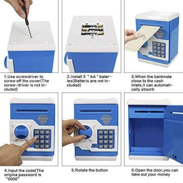 Show more Let your child's imagination soar with this incredible Electronic Money Bank designed specifically for kids. Not only does it serve as a piggy bank, but it also transforms the mundane act of saving money into an exciting adventure! With the capability to store about 600 coins or 100 paper bills, it's spacious enough for all their savings goals. The bank features a unique electronic password code for added security, ensuring that their hard-earned money is kept safe and sound.