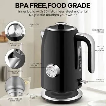 SULIVES Electric Kettle, 1.7L Stainless Steel Tea Kettle with Temperature Gauge, 1500W Water Boiler with LED Light, BPA-Free, Auto Shut-Off and Boil-Dry Protection,Black