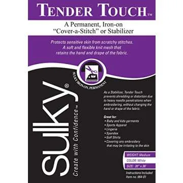 Show moreDiscover the ultimate solution for comfortable embroidered garments with the Sulky Of America Cut Away Tender Touch Iron-On Backing, a product designed to elevate your crafting experience. This lightweight, permanent stabilizer is perfect for protecting sensitive skin from the scratchy stitches often found in finished computerized embroideries. Measuring a generous 20" by 36", this white backing is crafted specifically for those who prioritize comfort and quality in their projects.