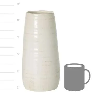 Show moreDiscover the exquisite charm of the Sullivans Ceramic Boho Vase, designed to elevate your home décor with an elegant touch. Standing at nearly a foot tall, this stunning ceramic vase not only embodies style and sophistication, but also serves as a versatile decor piece for any space. Crafted from 100% durable ceramic, its substantial weight ensures stability, allowing you to display beautiful floral arrangements or let the vase shine on its own. The off-white finish with a rustic touch adds a modern farmhouse feel that blends seamlessly with various interior styles.