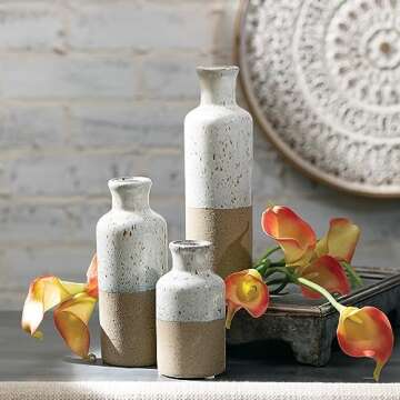 Sullivans White Tan Ceramic Vase Set – Elegant Farmhouse Home Decor