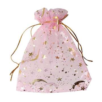 SUMAJU 100 Count Pink Moon Star Organza Gift Bags, Wedding, Party Favor Bags, 3.5x4.7Inch