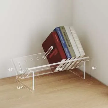 Sumerflos Acrylic Desktop Bookcase, Book Storage Organizer Bookshelves, Clear Mordern Tabletop Storage Rack for Office Home Shelf Display for Cd/Magazine/Book - Clear