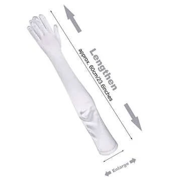 Sumind 1920s Opera Gloves Fingerless Gloves Long Satin Gloves Elbow Length(White 3, 23.6 inch)