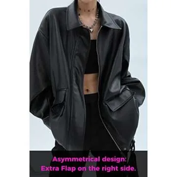 Sumleno Women Faux Leather Blazer Vintage Lapel Boyfriend PU Jacket Long Sleeve Button Down Coat Streetwear (A,M)