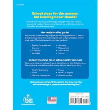 Show moreTransform your child’s summer into a fun learning adventure with the Summer Bridge Activities 2nd to 3rd Grade Workbooks! Designed to comprehensively combat summer learning loss, this workbook offers an engaging way for children to review key skills from the previous school year while previewing the exciting topics they will encounter in third grade. In just 15 minutes a day, your child can dive into a variety of activities covering language arts, math, and science—all tailored to keep their minds sharp and ready for the next academic year.