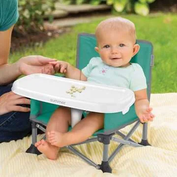 Summer by Bright Starts Pop 'N Sit Portable Booster Chair, Floor Seat, Indoor/Outdoor Use, Compact Fold, Teal, 6 Mos - 3 Yrs