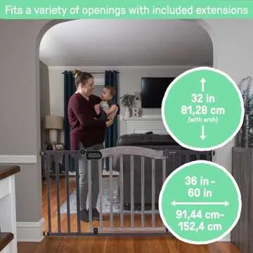 Summer Decorative Wood & Metal Pet and Baby Gate, 36" - 60" Wide, 32" Tall, Pressure Mounted, Install Wall to Wall or Doorway, Walk-Through Safety Gate - Gray