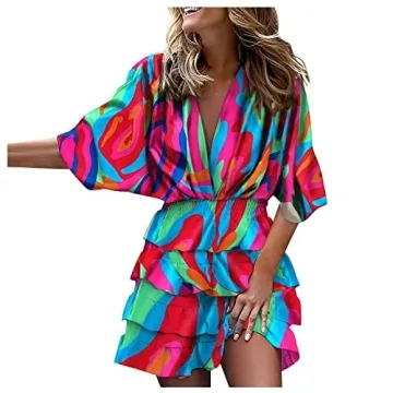 Show more Introducing the Summer Fancy Dress Ladies Three Quarter Sleeve A Line Beach Comfort Dress - your ultimate go-to for warm summer days! This exquisite dress not only boasts a vibrant floral print, but is also crafted from lightweight, breathable polyester fabric that ensures maximum comfort while you enjoy the sun. The V-neckline and adjustable drawstring waist enhance your silhouette, while the three-quarter sleeves provide a perfect balance between style and ease, making it ideal for various occasions. Available in a range of enchanting colors, this dress effortlessly blends fashion with functionality.