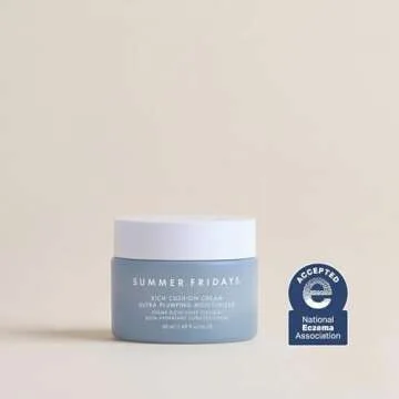 Summer Fridays Rich Cushion Face Cream - Ultra Plumping Barrier Repair Cream + Makeup Primer - Infuses Skin with Rich Hydration from Glycerin + Squalane - Non-Comedogenic + Fragrance-Free (1.69 Oz)