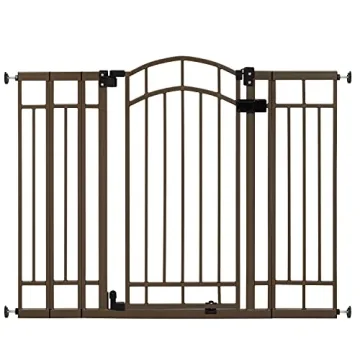 Installation tips: Although the gate may appear slightly bent initially, this is normal and will be rectified during the setup process. Take care to avoid installing it in openings that measure 32-32.5 inches, 36-36.5 inches, 40-40.5 inches, or 44-44.5 inches, as they are not compatible. With its powder-coated bronze finish, this gate is not just a safety feature; it's a sophisticated addition to your home.