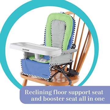 Say goodbye to bulky high chairs! The Summer-Pop ‘n Sit SE Recline Lounger enriches your parenting experience by offering a seating solution that adjusts to your child's growing needs. Its portability means you can bring comfort and security wherever you go, ensuring that your little one enjoys mealtime whether you're at home or on a family outing. The convenience of quick setup, easy cleaning, and adaptable features will make you fall in love with this product more each day.