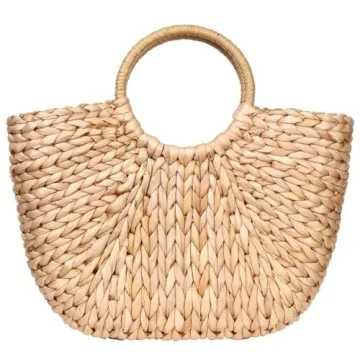 Summer Rattan Bag for Women Straw Hand-woven Top-handle Handbag Beach Sea Straw Rattan Tote Clutch Bags (Khaki)
