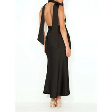 Show moreStep into elegance with our Summer Satin Halter Deep V Neck Backless Maxi Dress for Women 2024, a stunning addition to your wardrobe that seamlessly blends style and sophistication. This exquisite dress is crafted from high-quality satin polyester that promises a lightweight, breathable experience while offering a smooth, soft touch against your skin. The adjustable tie-up design not only enhances your silhouette but also allows you to personalize the fit, ensuring you look and feel your best for any occasion. Whether you're attending a glamorous wedding or an upscale cocktail party, this dress will undoubtedly make you the center of attention. Its gorgeous backless feature and flowing silhouette create a flattering shape that works beautifully for all body types.