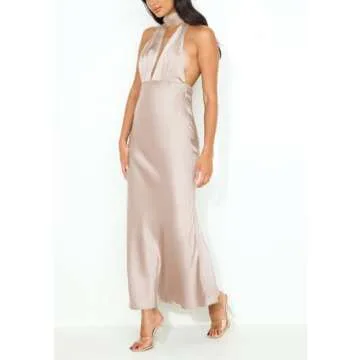 Show moreElevate your style this season with our stunning Summer Satin Halter Deep V Neck Backless Maxi Dress for Women. Designed with a chic and trendy aesthetic, this maxi dress features a graceful v-neck and adjustable tie-up design, making it perfect for any glamorous occasion. Crafted from premium lightweight satin polyester, the fabric is not only skin-friendly but also breathable, ensuring you stay comfortable whether you're enjoying a night out or attending a formal wedding. The exquisite flow of this dress is sure to have heads turning as you glide effortlessly across the floor, creating unforgettable moments with every wear. Available in multiple stunning colors including Champagne, Black, and Blue, this dress will become your go-to choice for any festive gathering.
