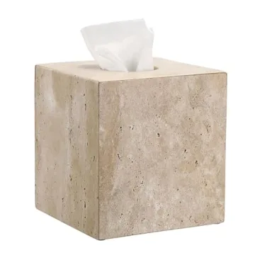 Discover the fusion of beauty and functionality with the Sumnacon Square Tissue Box Cover made from exquisite natural travertine. This heavy-duty tissue holder not only serves its purpose but also enhances your décor with its light beige hue and unique textures, making it a perfect fit for any home. Crafted from authentic, durable travertine stone, this tissue box cover is designed to withstand everyday use while adding a touch of sophistication to your living area. The smooth, polished...