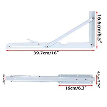 The Sumnacon Folding Shelf Brackets measure 16.6cm x 39.7cm (6.5" x 16").